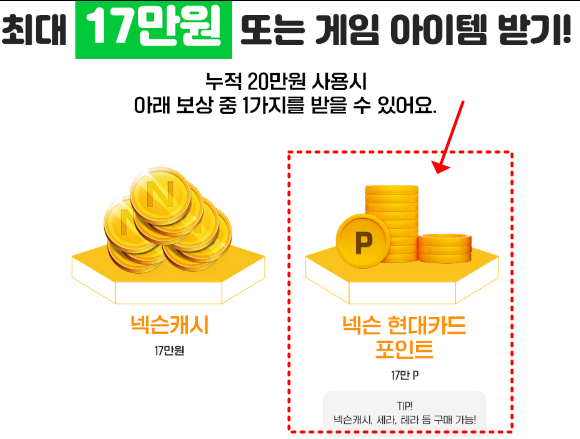 6. 혜택 선택하기 ( 넥슨 현대포인트 선택하기 ) : 신규 1만 포인트+ 혜택 17만 포인트 = 18만 포인트