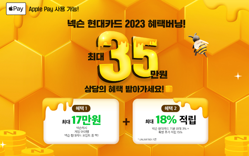 언제, 어디서 결제하든 넥슨캐시로 바꿀 수 있는 넥슨 현대카드 포인트 최대 3% 무제한 적립!
