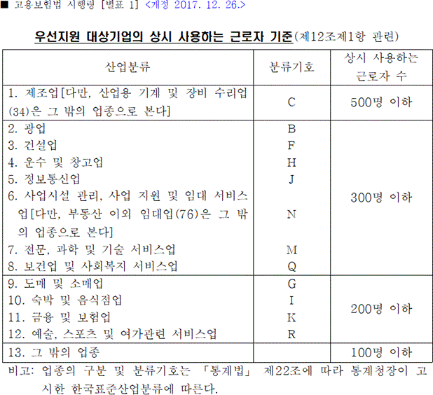 2. 고용노동법 시행령 우선지원 대상기업 범우