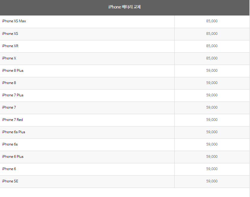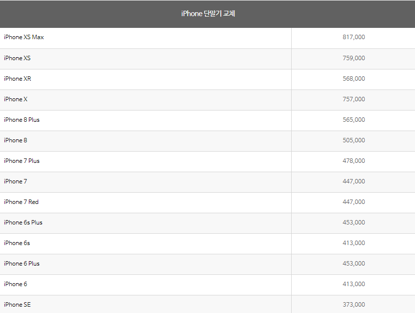 업체에서 공개한 유상 수리 금액입니다.