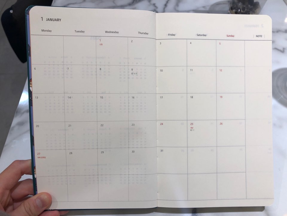 올해 첫번째로 받은 연간 다이어리 자랑시간입니다.