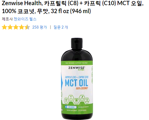 2. Zenwise Health, 카프릴릭 (C8) + 카프릭 (C10) MCT 오일, 100% 코코넛, 무맛, 32 fl oz (946 ml) , 29,957원