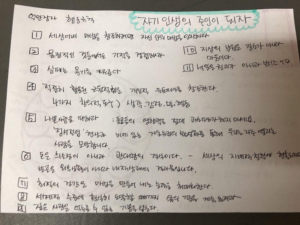 내 인생의 주인이 되기 위해 저거 자체를 참고해서 내 행동규칙도 만들 거야. 그게 내 2차 목표쯤 되는 것 같아.