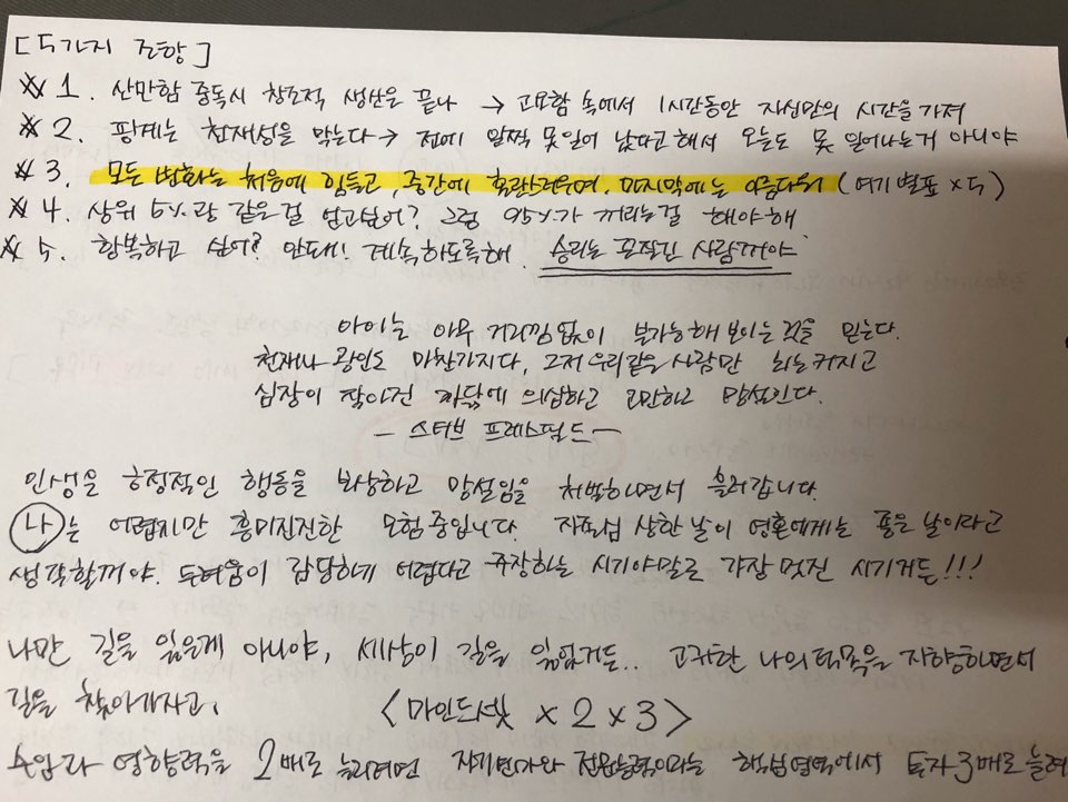 3. 모든 변화는 처음에 힘들고, 중간에 혼란스러우며, 마지막에는 아름다워(여기 별표 다섯 개)