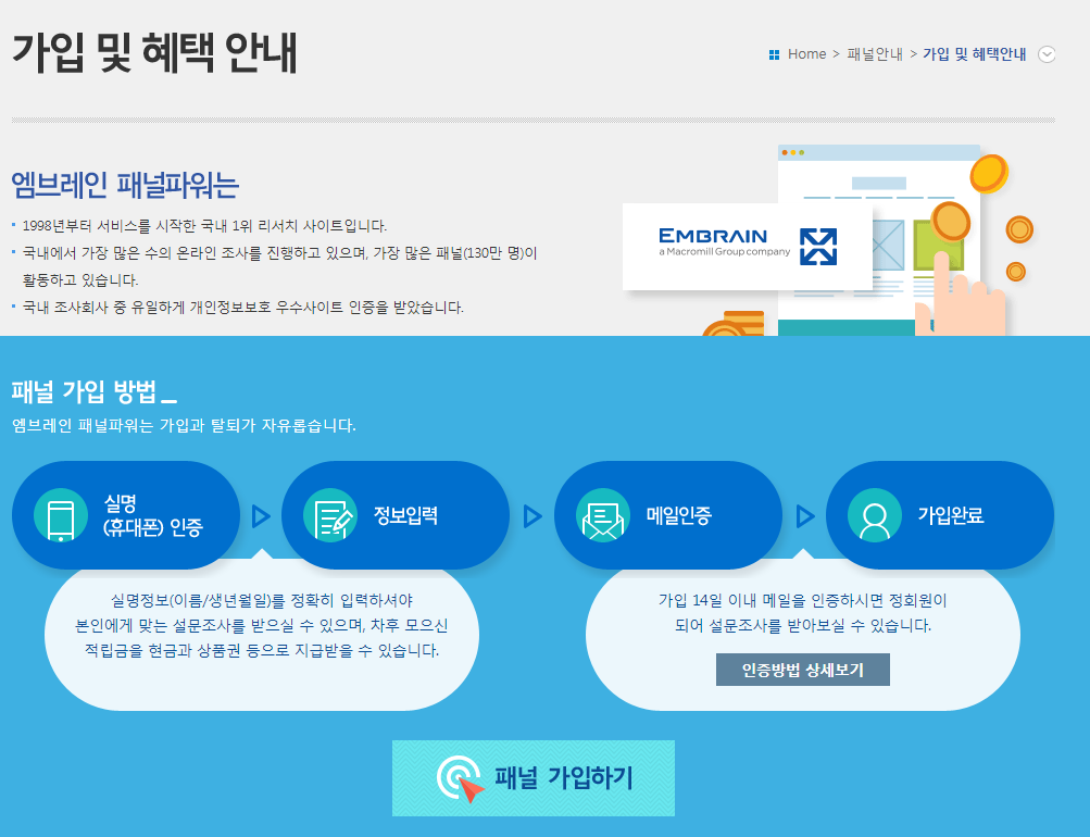 엠브레인은, 국내 1위 리서치 사이트입니다.