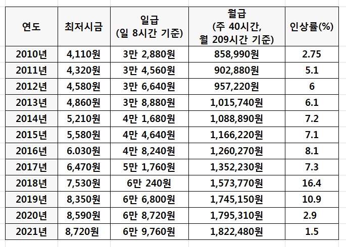 8,720원으로 2020년과 대비했을 때 130원(1.5%)가 인상됐습니다.