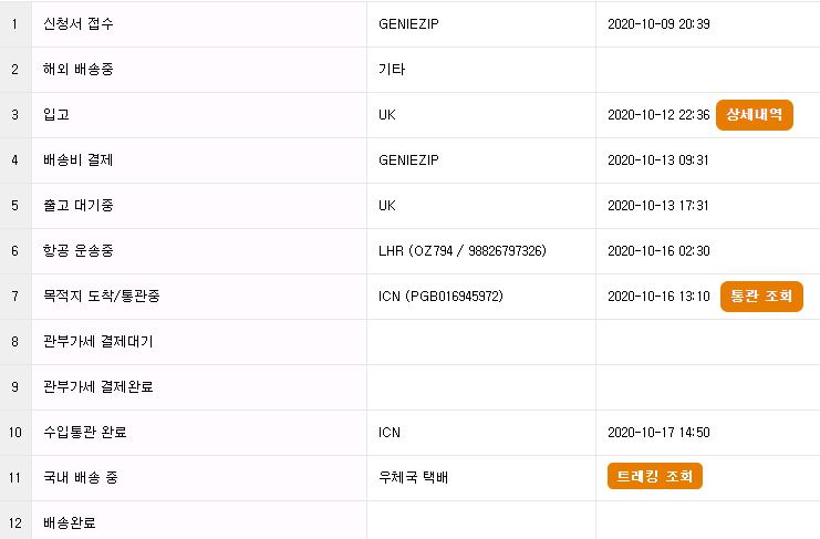 2. 2020.10.12.월요일 / 입고(영국내 배송완료)