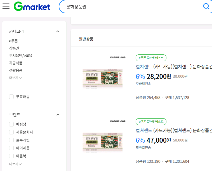 3. 컬처랜드 문화상품권 등으로 할인받아서!