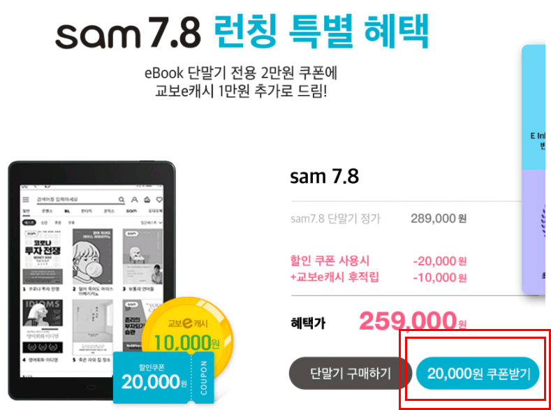 최고성능, 교보문고에서 드디어 일을냈다. KYOBO eBOOK READER SAM 7.8 그랜드 오픈 교보문고 이북리더기 샘 7.8입니다. 요즘 이북리더기를 구매하고 싶어서 계속 알아보고 있던 참이었습니다. 인문용