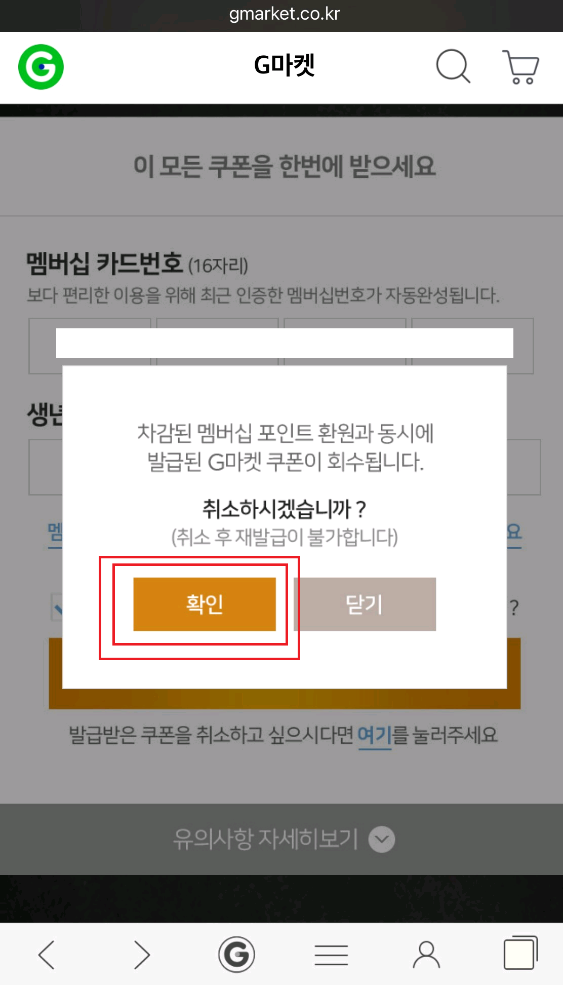 6. '발급받은 쿠폰을 취소하고 싶으시다면 여기를 눌러주세요.' [여기]클릭