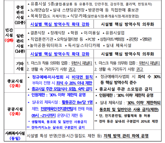 [시설별 핵심 방역수칙 확대 강화]