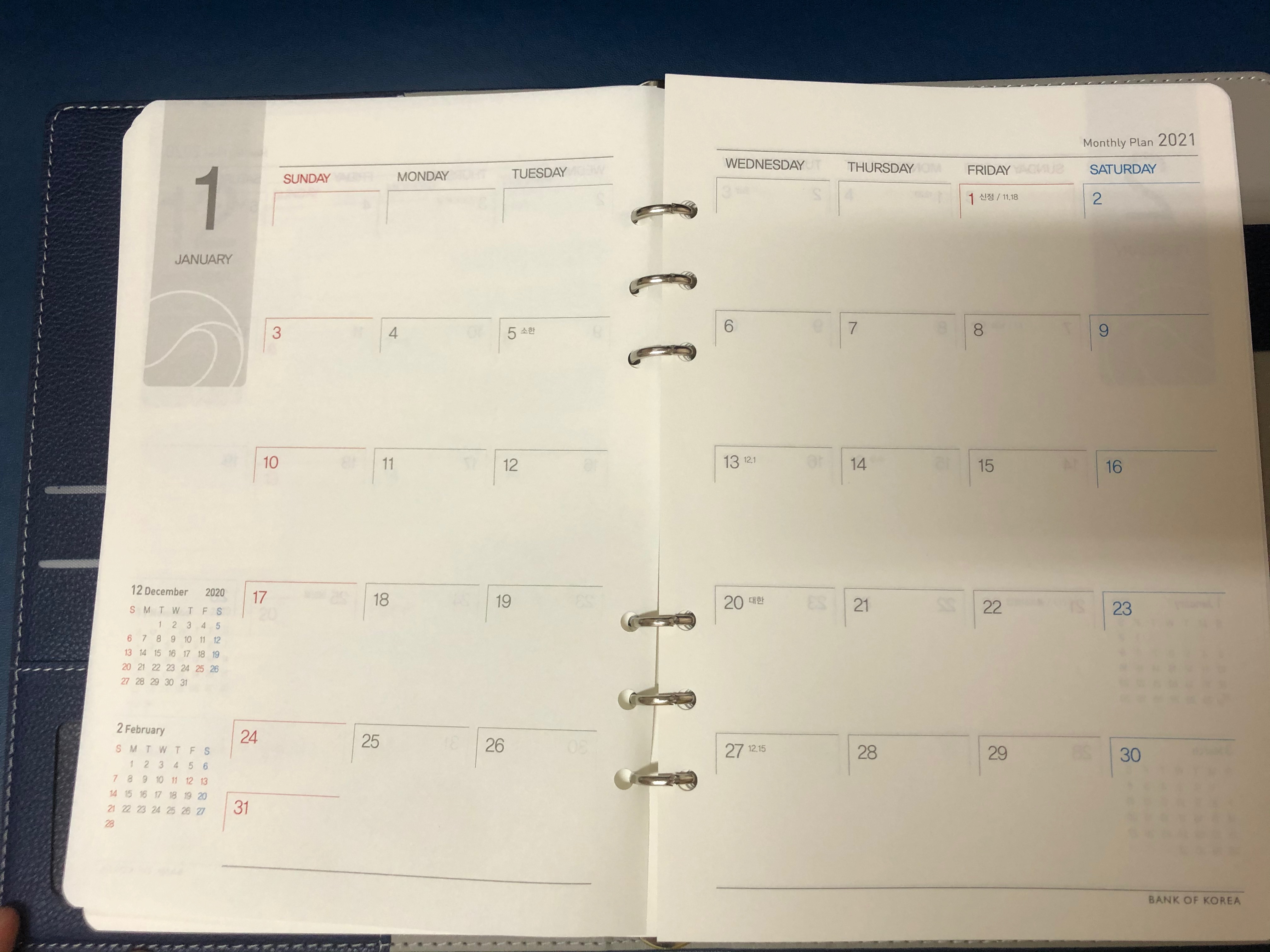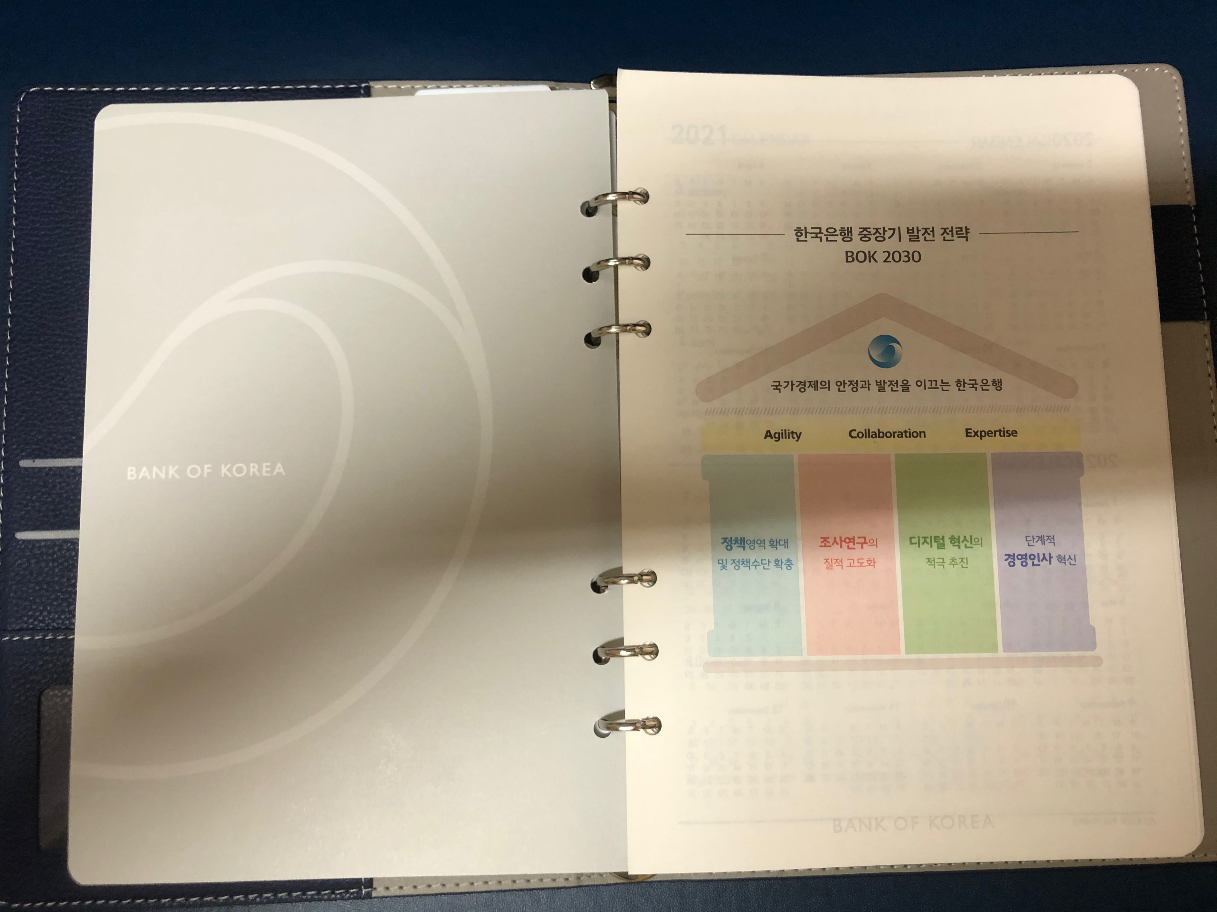 2021년 한국은행 다이어리 실물.